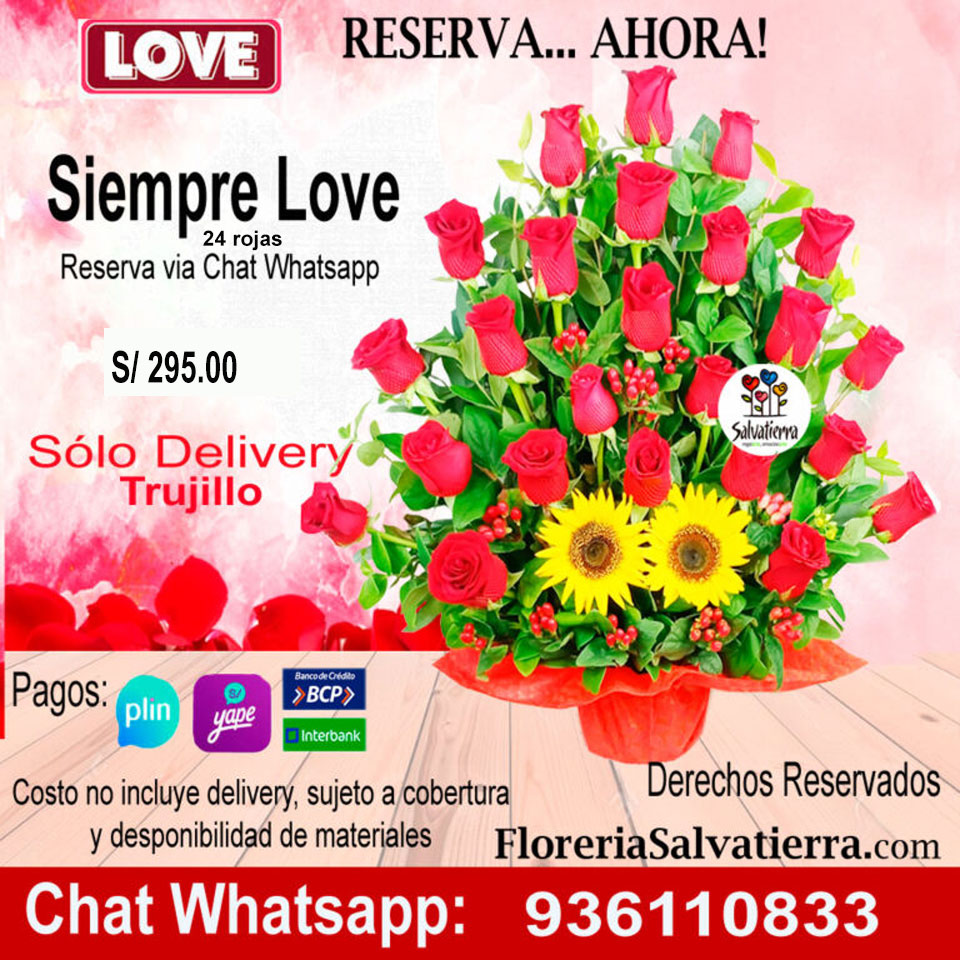 Florerías en Trujillo, envíos el mismo día, Florería directa, Reservas vía chat WhatsApp, delivery sólo a Trujillo, pagos con YAPE, PLIN, Transferencias BCP, Interbank, Florerías en Trujillo Perú.